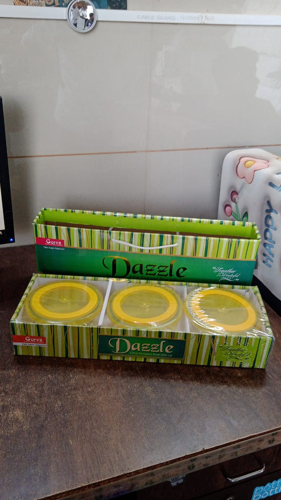 Dazzle Glass Bowl Set Mixing / Storage Bowls with Lids Food Storage Container Set with Lids - Microwave & Freezer Safe  Multipurpose Kitchen Bowls Multicolour (3 Pcs Set)